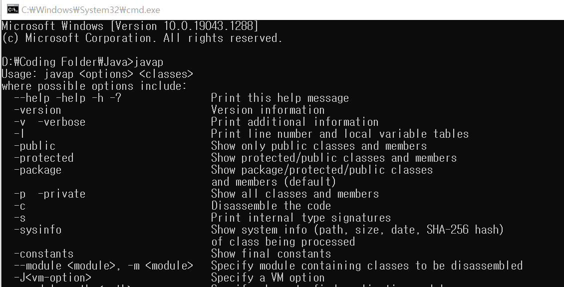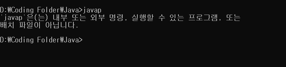 JDK 폴더에 들어가면 멀쩡히 javap가 보이기 때문에 javap가 설치 안된 그런 문제는 아닌 것 같다.