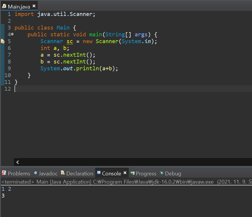 두 정수 A와 B를 입력받은 다음, A+B를 출력하는 프로그램을 작성하시오.