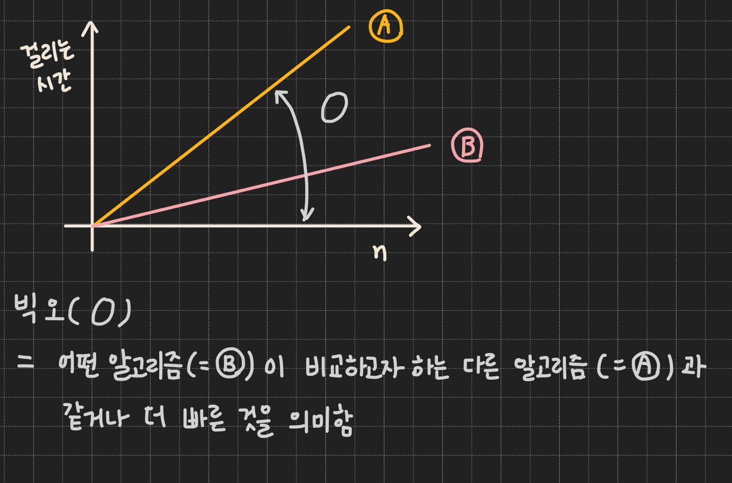 → 여기에서 그래프 A보다 같거나 더 빠른 알고리즘(= 그래프 B)을 빅 오로 나타낼 수 있음
