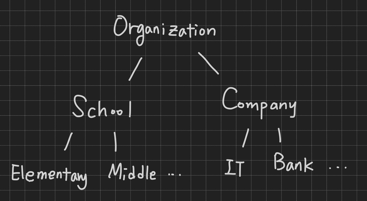 → Elementary는 School의 정보를 갖고 있고 School은 Organization의 정보를 갖고 있음