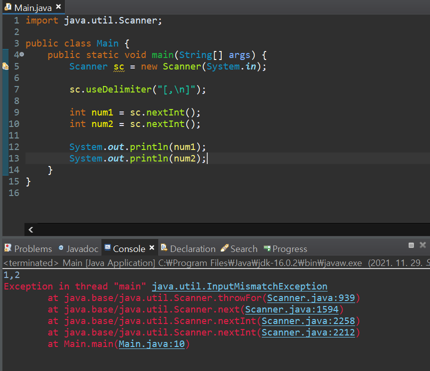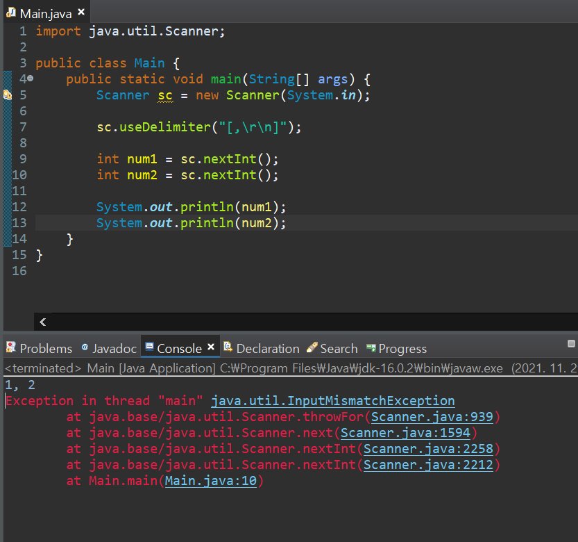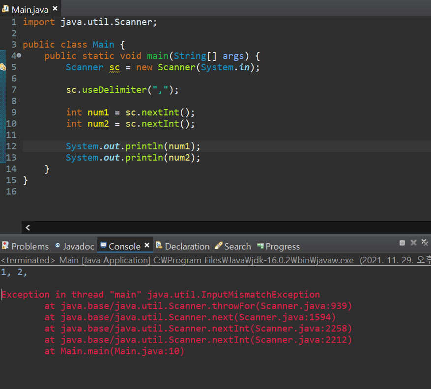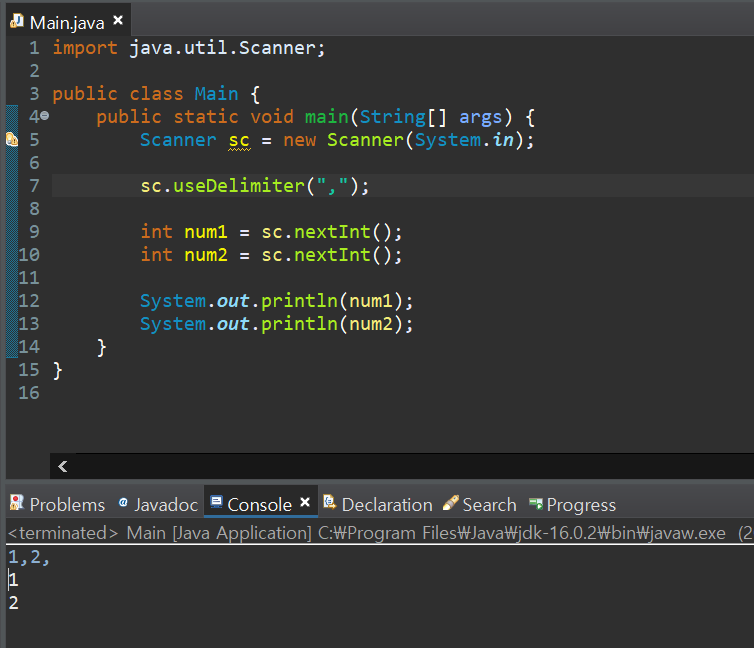 [Java 공부] Scanner 클래스의 useDelimiter 메소드를 이용해서 구분자를 쉼표로 변경해보기 본문
