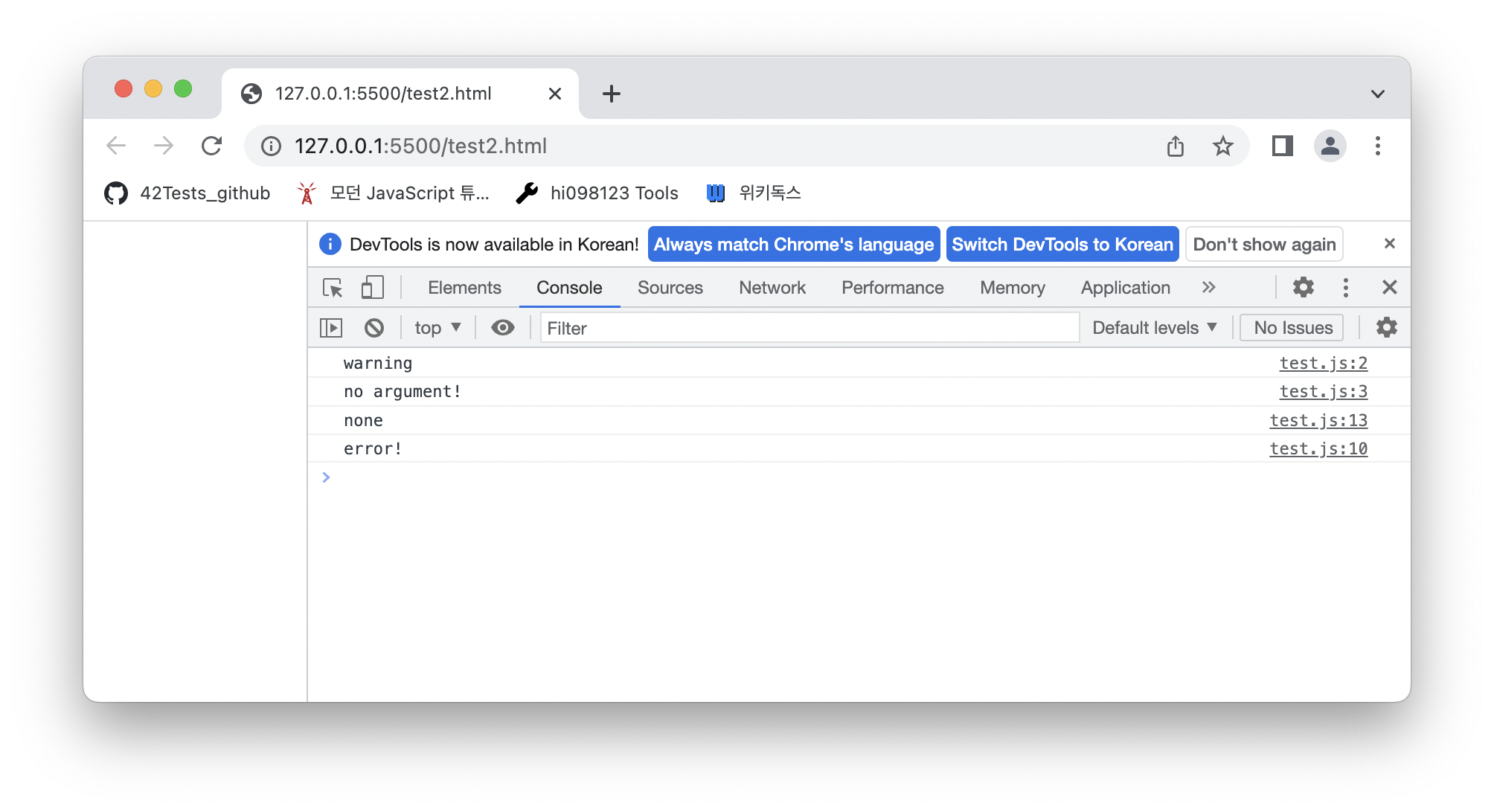 function testMessage(sign = 'no argument', errorSign) { // sign의 기본값 = 'no argument'